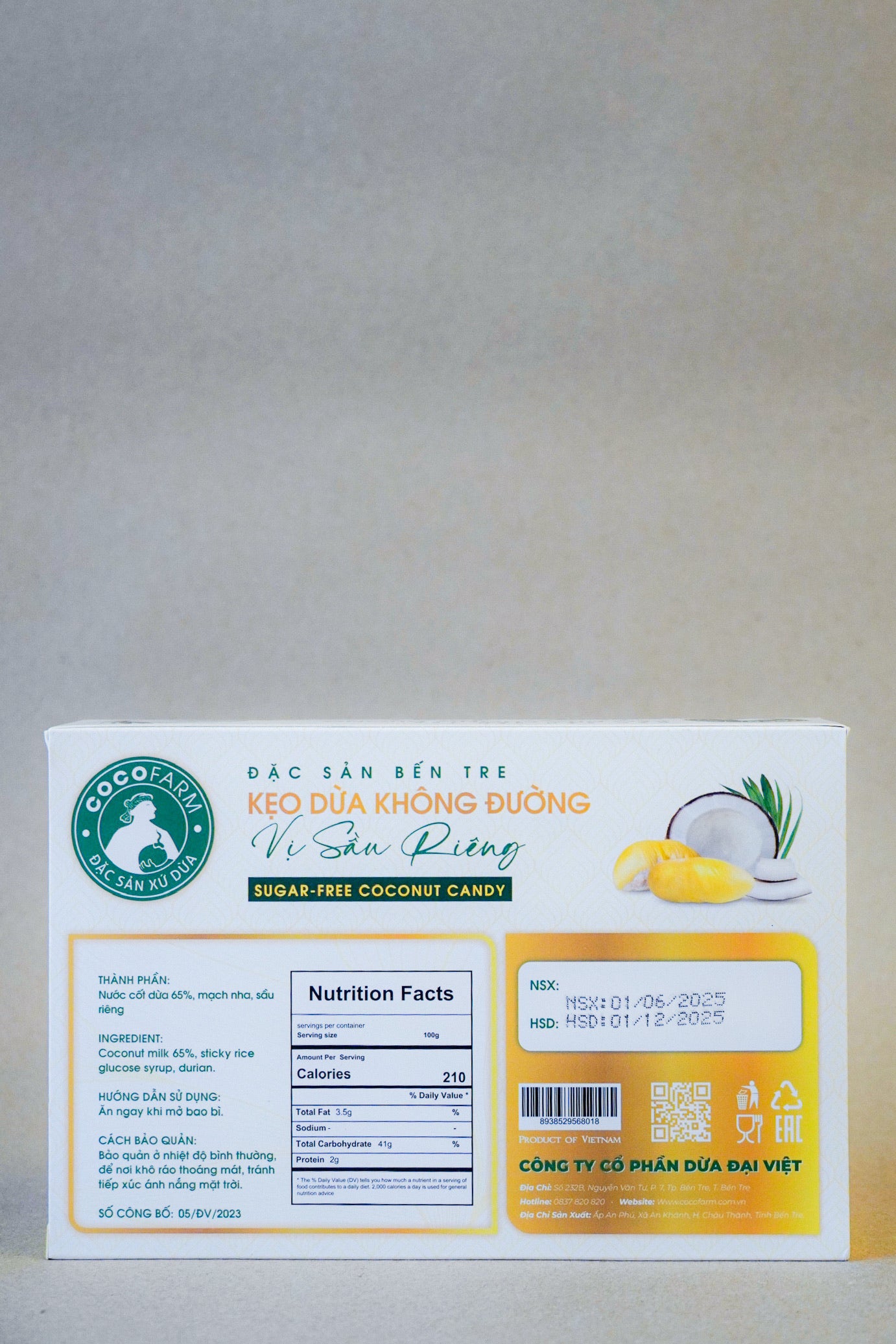CocoFarm - Kẹo Dừa Không Đường Vị Sầu Riêng | Sugar-Free Coconut Candy with Durian Flavor