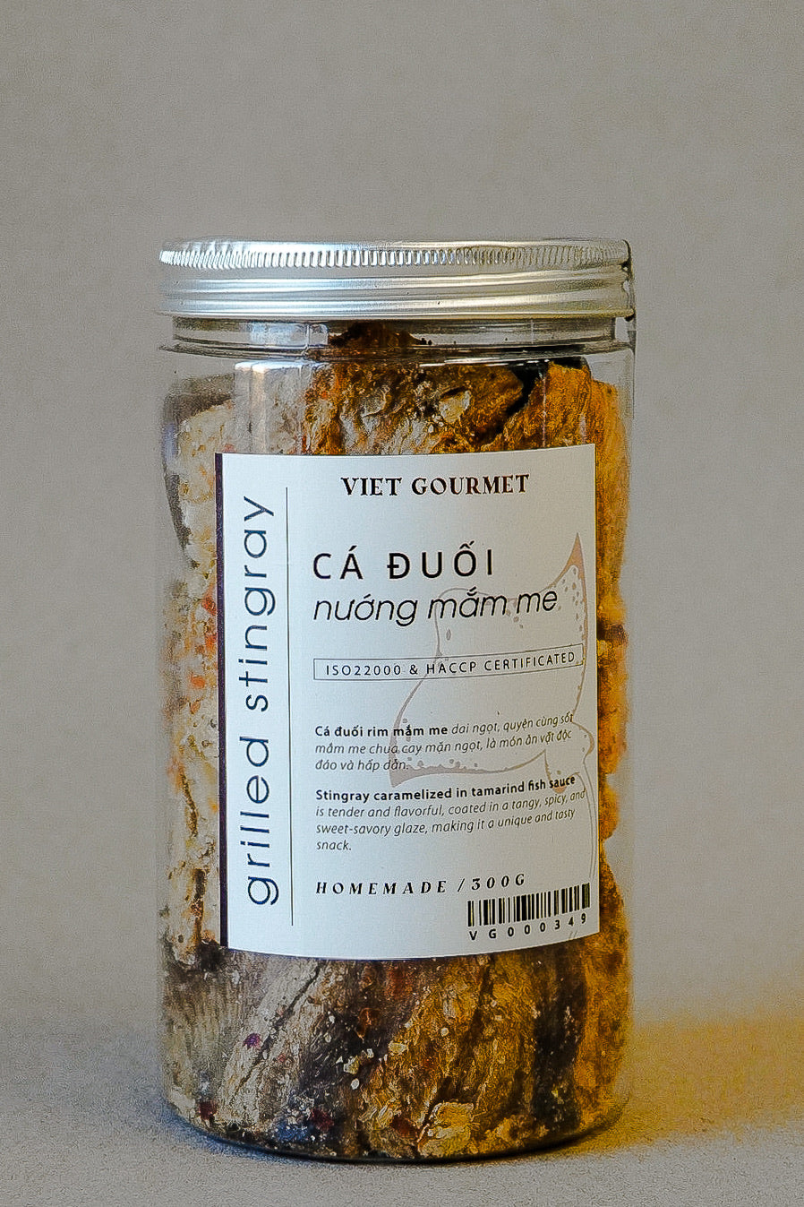 Savory – aromatic – slightly tangy, Grilled Stingray with Tamarind Sauce is a traditional Vietnamese snack that combines the rich flavor of grilled stingray with the mild tanginess of tamarind sauce. Fresh stingray is cleaned, marinated with signature spices, and grilled over charcoal until golden, preserving its natural sweetness and aromatic flavor. Perfect for snacking or serving with steamed rice.