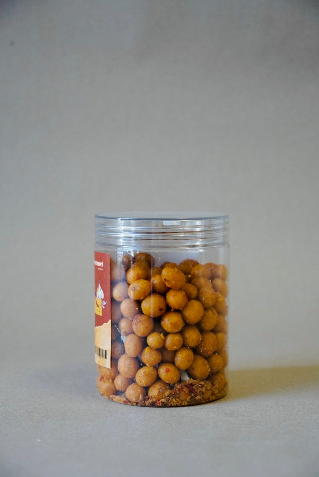 Golden-roasted peanuts wrapped in a crispy fish-skin coating, seasoned with fragrant garlic and a kick of chili heat. A crunchy, savory, and addictive snack you’ll keep reaching for.